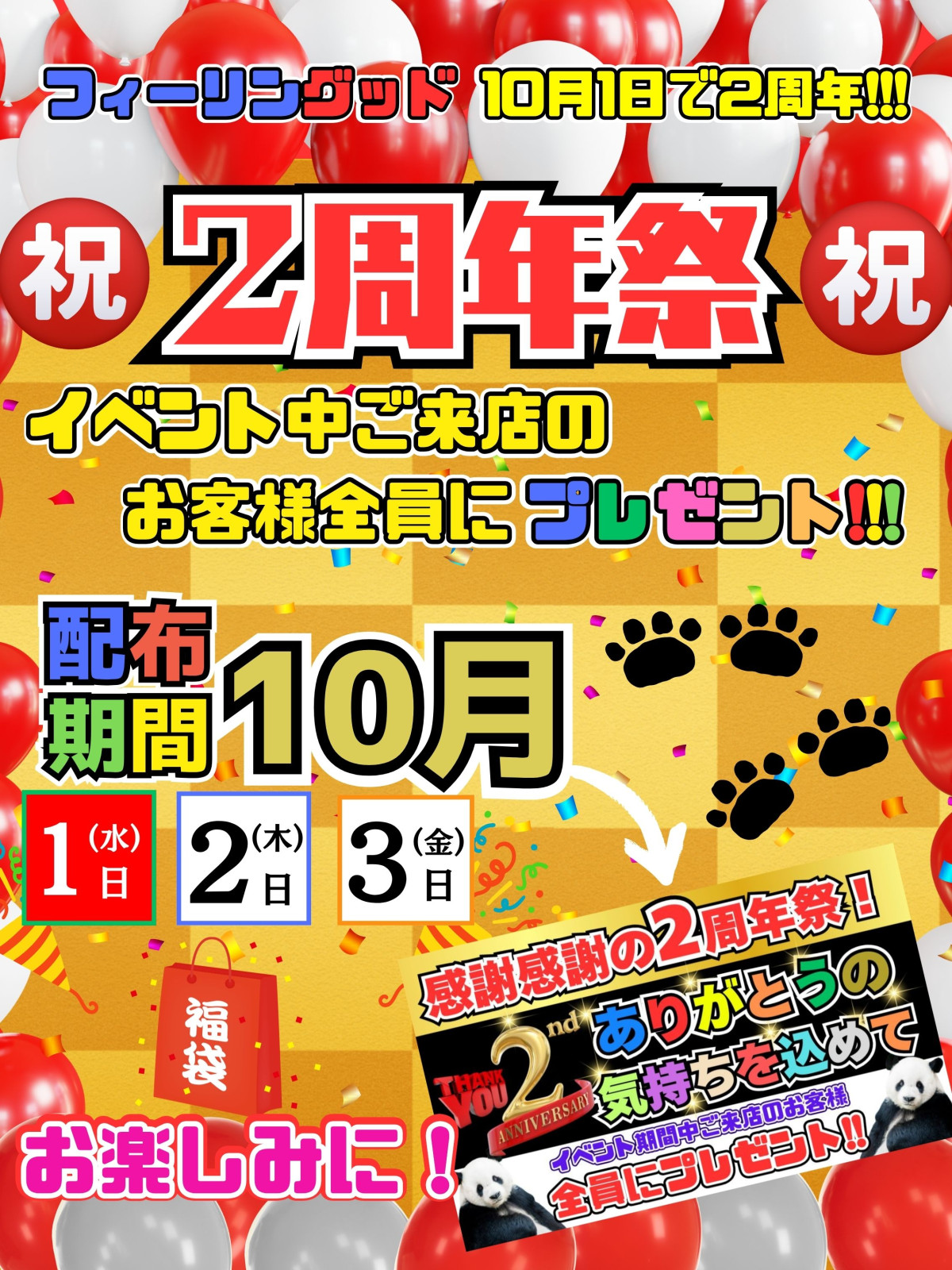 毎朝10:00オープン!!整理券は店頭にて朝9:00より配布致しております。
